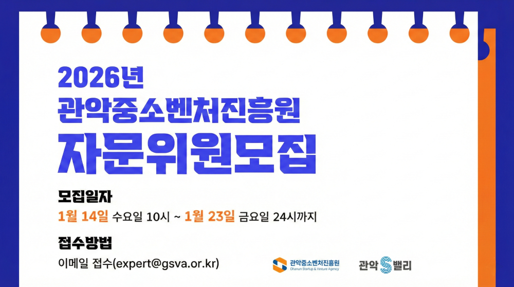 관악중소벤처진흥원에서는 관악구 내 스타트업 및 벤처·창업기업을 대상으로 추진 중인 지원사업의 평가 및 자문에 참여할 자문위원을 모집합니다.
