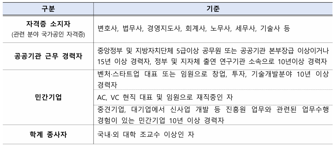 ○ 주요업무 : 관악S밸리 스타트업 및 창업자 대상 각 분야별 자문 수행, 창업공간 입주기업 선발 및 지원사업 관련 심사·선정 등