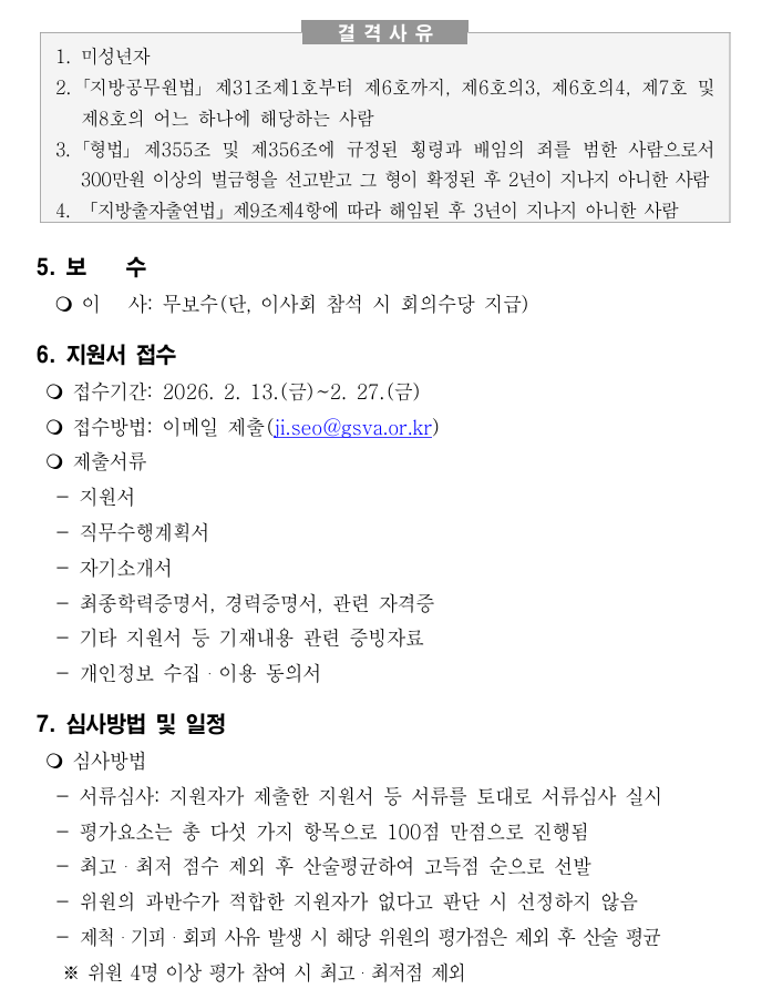 ○ 접수방법: 이메일 제출(ji.seo@gsva.or.kr)